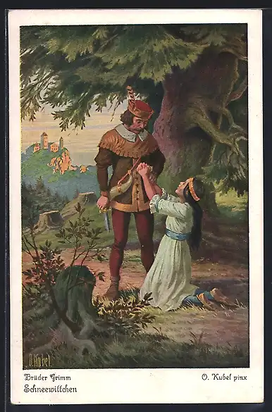 Künstler-AK Otto Kubel: Brüder Grimm, Schneewittchen, Nr. 2, Der Jäger hat Mitleid mit Schneewittchen