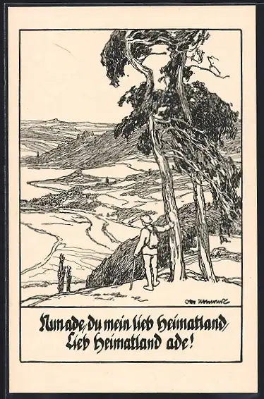 Künstler-AK Otto Ubbelohde: Deutsche Volkslieder Nun ade, du mein lieb Heimatland!