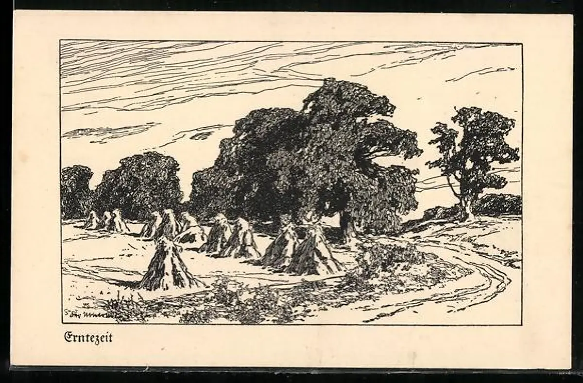 Künstler-AK Otto Ubbelohde: Felder zur Erntezeit