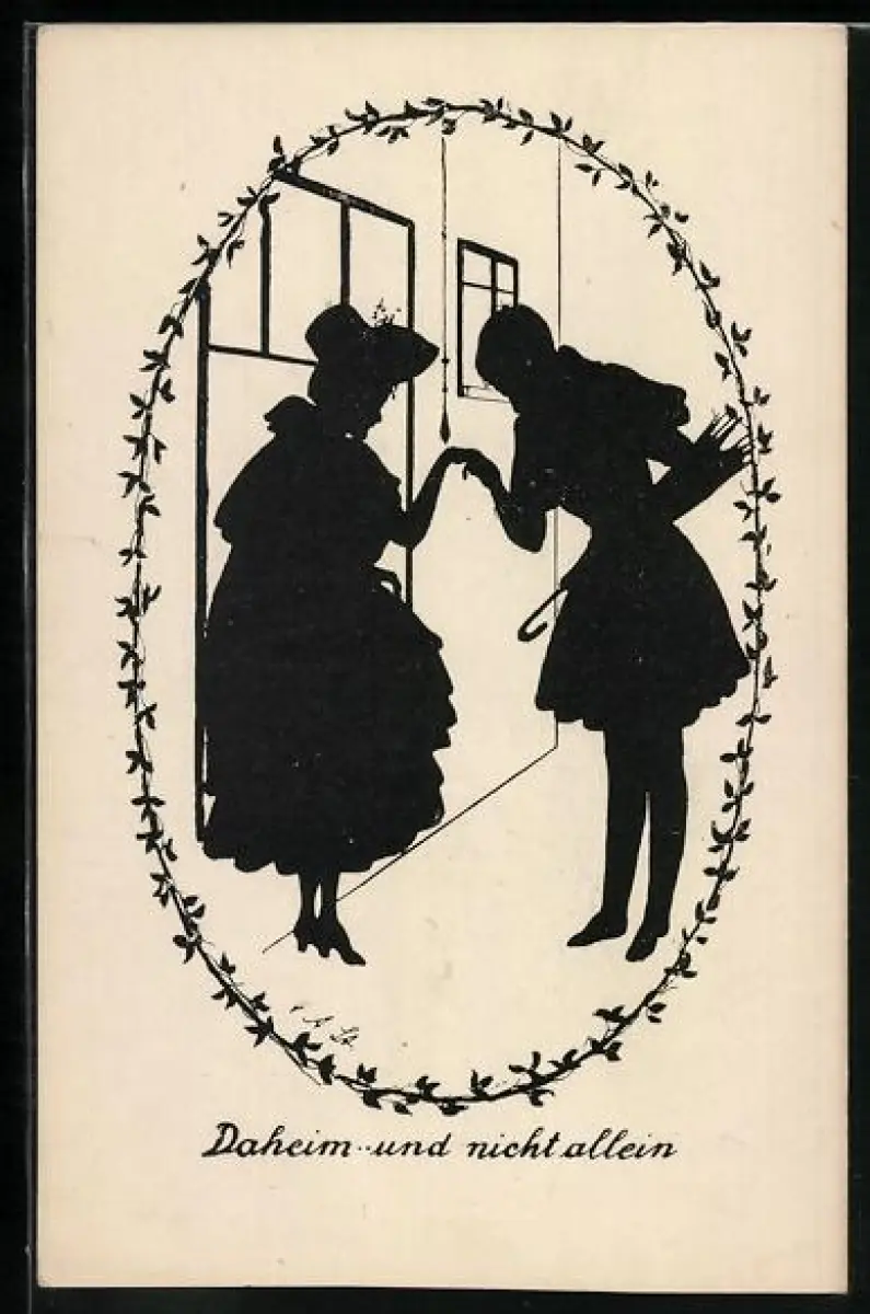 Künstler-AK Ov. Alt-Stutterheim: Frau hält die Hand von älterer Dame, Schattenbild