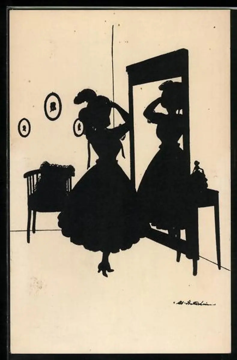 Künstler-AK Ov. Alt-Stutterheim: Junge Frau macht sich ausgehfertig