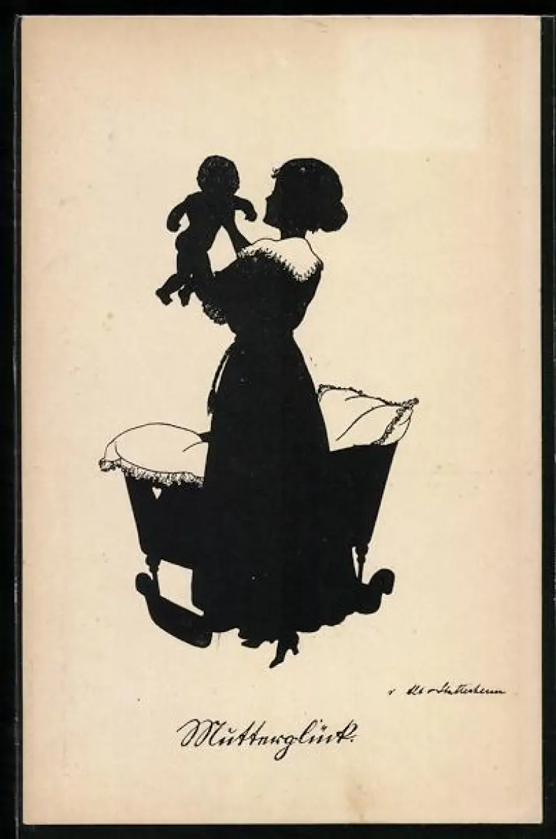 Künstler-AK Ov. Alt-Stutterheim: Mutter nimmt das Kind aus der Wiege