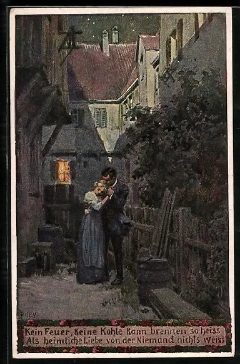 Künstler-AK P. Hey: Kein Feuer, keine Kohle, Heimliches Treffen des Soldaten