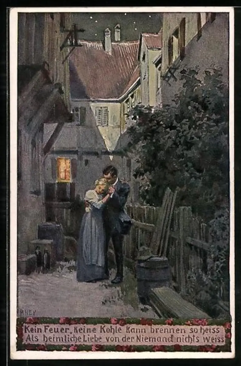 Künstler-AK P. Hey: Kein Feuer, keine Kohle, Heimliches Treffen des Soldaten