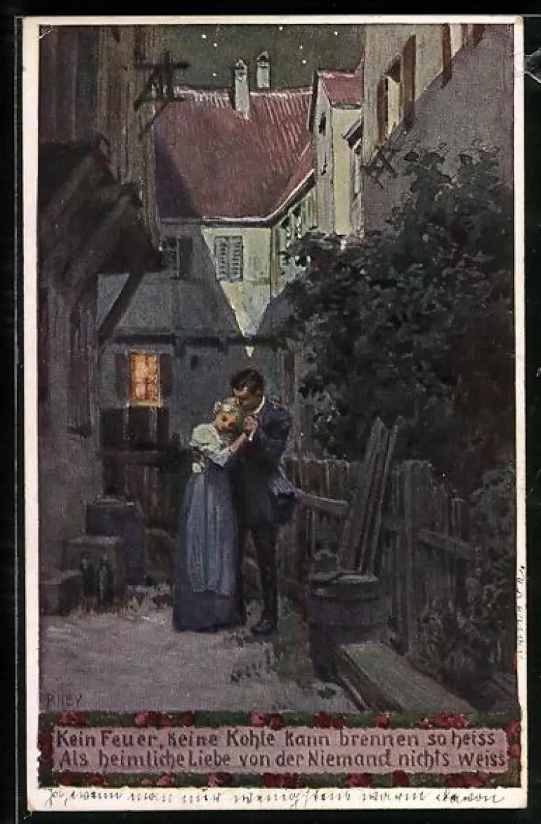 Künstler-AK P. Hey: Kein Feuer, keine Kohle, Heimliches Treffen des Soldaten