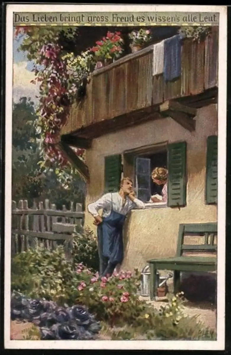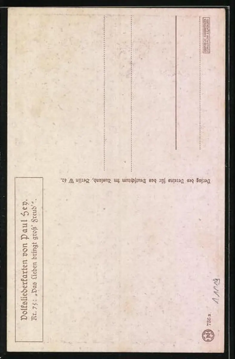 Künstler-AK P. Hey, Volksliederkarte Nr.: 75, Das Lieben bringt gross Freud, es wissen alle Leut