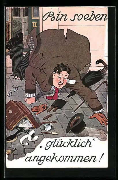 Künstler-AK P. O. Engelhard (P.O.E.): Bin soeben glücklich angekommen!