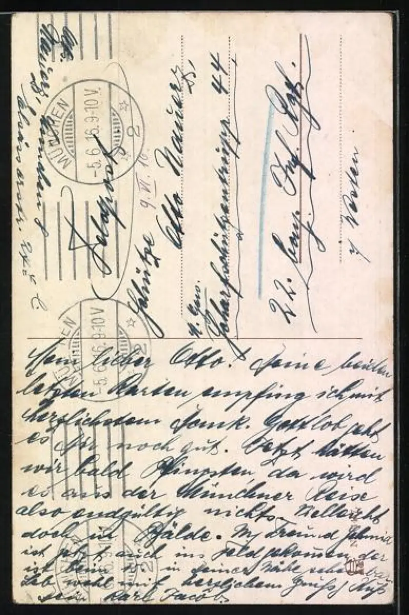alte Ansichtskarte, gelaufen 1916, Eckknick re. unten, guter Zustand