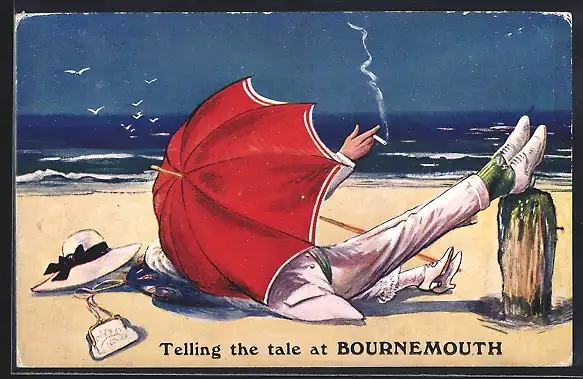 Künstler-AK Paar liegt am Strand unter einem Schirm