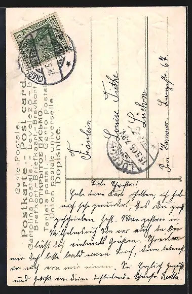 alte Ansichtskarte, gelaufen 1906, Abriebspuren unten, guter Zustand