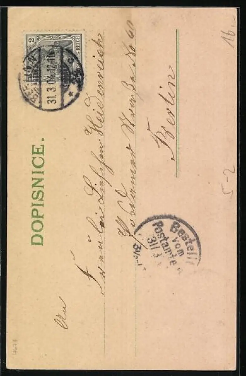 alte Ansichtskarte, gelaufen 1904, Eckknick re. oben, guter Zustand