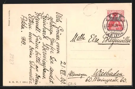 gelaufen 1909, Eckknick li. oben, guter Zustand