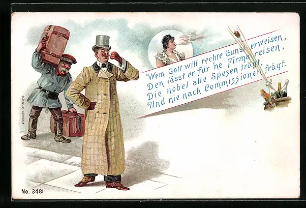 Künstler-AK Page trägt Gepäck eines Geschäftsmanns