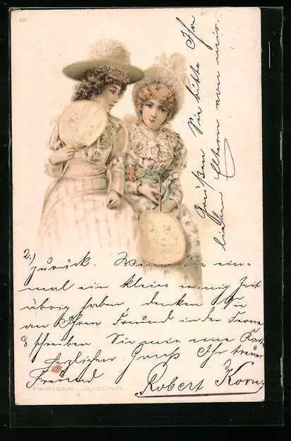 Künstler-AK Paris, Pariser Jugend - Zwei junge Damen mit Fächern