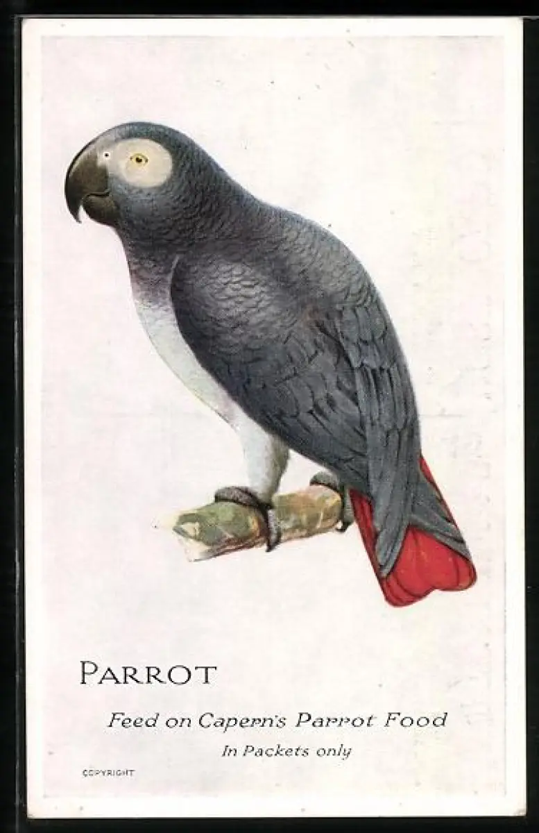 Künstler-AK Parrot, Feed on Capern`s Parrot Food