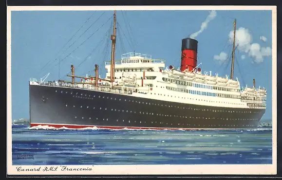 Künstler-AK Passagierschiff R.M.S. Franconia bei Hafenausfahrt, Cunard Line