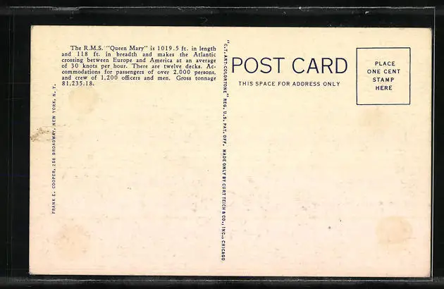 Künstler-AK Passagierschiff RMS Queen Mary in voller Fahrt
