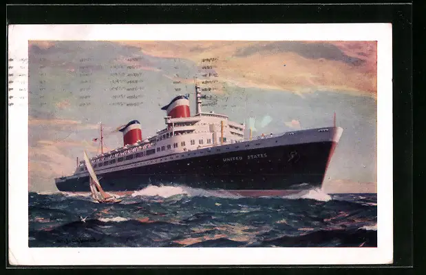 Künstler-AK Passagierschiff SS United States in voller Fahrt