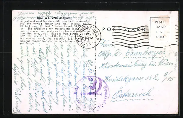 gelaufen 1952, Briefmarke entfernt, Stempelspur, guter Zustand