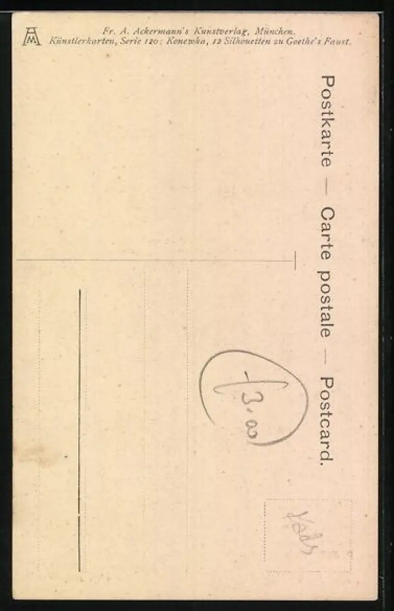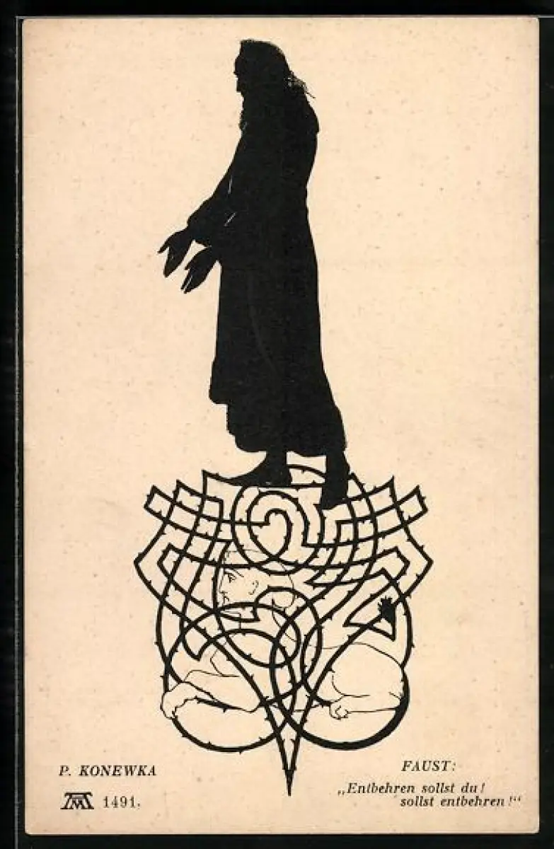 Künstler-AK Paul Konewka: Schattenschnitt, Faust, Entbehren sollst du
