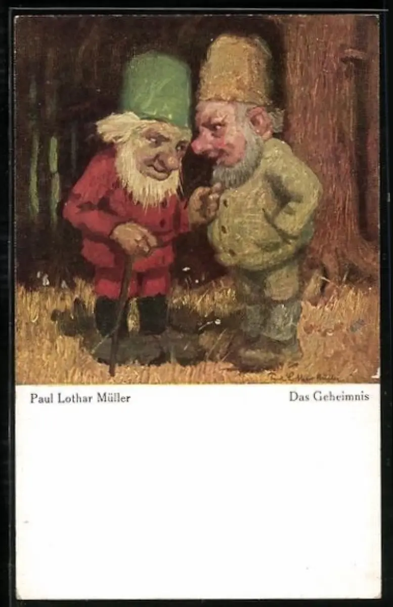 Künstler-AK Paul Lothar Müller: Zwerg verrät seinem Freund ein Geheimnis