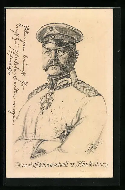 Künstler-AK Paul von Hindenburg, der Feldmarschall in Uniform mit Schirmmütze