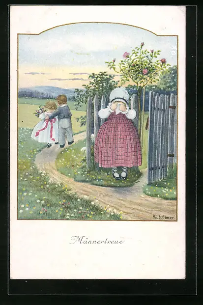 Künstler-AK Pauli Ebner: Mädchen weint dem Liebsten nach