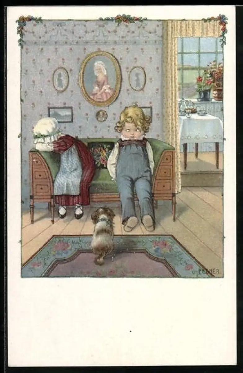 Künstler-AK Pauli Ebner: weinendes Mädchen nach Streit mit einem Jungen