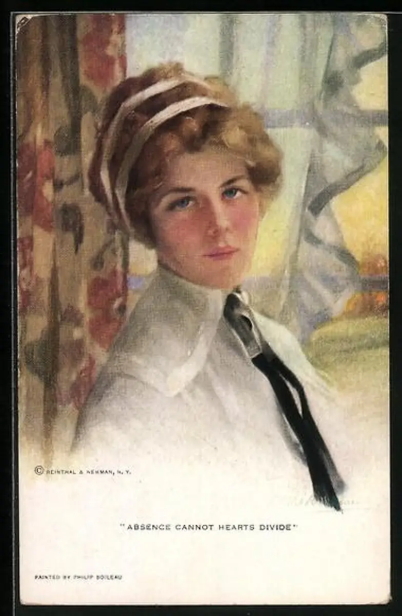 Künstler-AK Philip Boileau: Absence cannot hearts divide, schönes junges Fräulein in einer Bluse