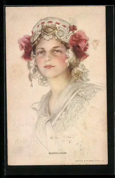 Künstler-AK Philip Boileau: Junge Frau mit blumengeschmückter Haube