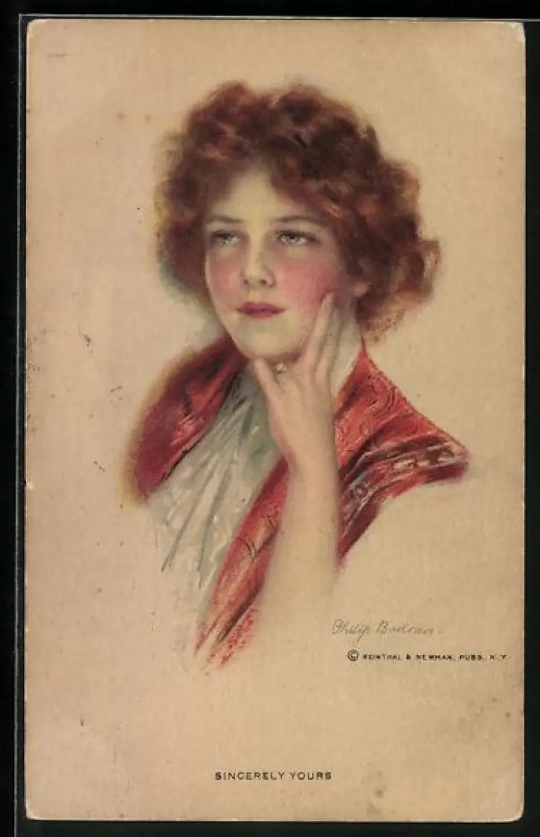 Künstler-AK Philip Boileau: Portrait Rothaarige Frau denkt nach
