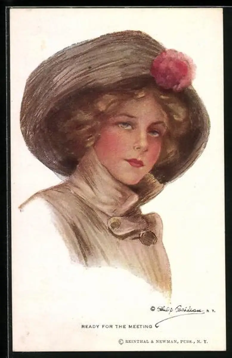 Künstler-AK Philip Boileau: Ready for the meeting, Dame im Mantel mit Hut