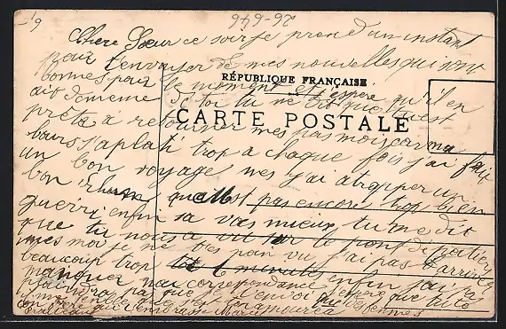 alte Ansichtskarte, ungelaufen, Briefmarke entfernt, Abriebspur unten li., guter Zustand