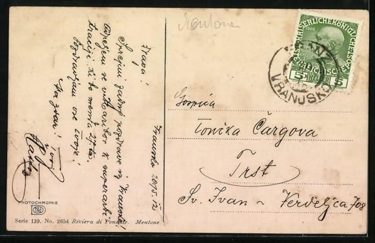 Künstler-AK Photochromie Nr. 2654: Riviera di Ponente, Mentone, Ortsansicht im Frühling