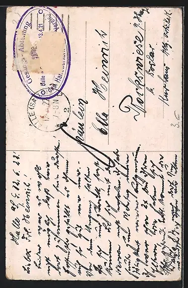 alte Ansichtskarte, gelaufen 1922, Briefmarke entfernt, rückseitig Oberflächenschaden, Eckknicke unten li. und re., guter Zustand