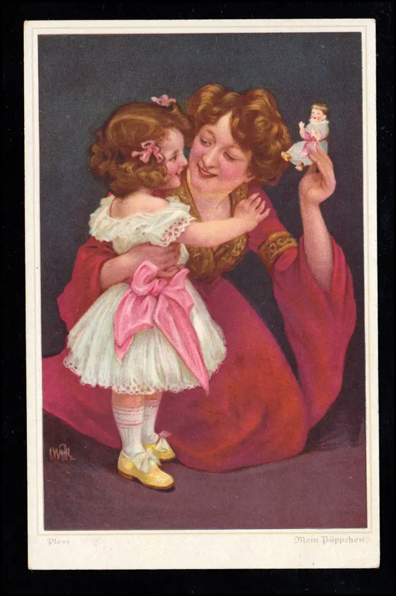 Künstler-AK Pless: Mein Püppchen - Mutter Kind Puppe, Verlag W.&.N., ungebraucht