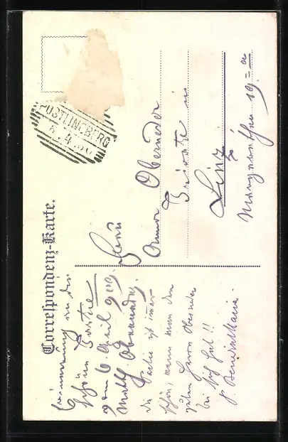 alte Ansichtskarte, gelaufen, Briefmarke entfernt, rückseitig Oberflächenschaden, guter Zustand