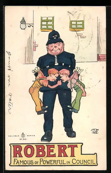 Künstler-AK Polizist mit Streithähnen, Robert, Famous or Powerful in Council
