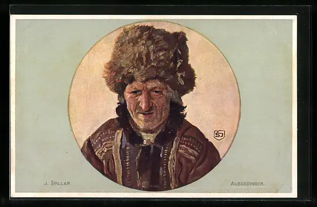 Künstler-AK Porträt eines tschechischen Mannes in Winterbekleidung und Pelzhut