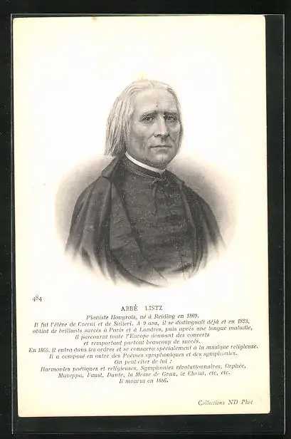 Künstler-AK Portrait Abbé Listz in schwarzer Kleidung
