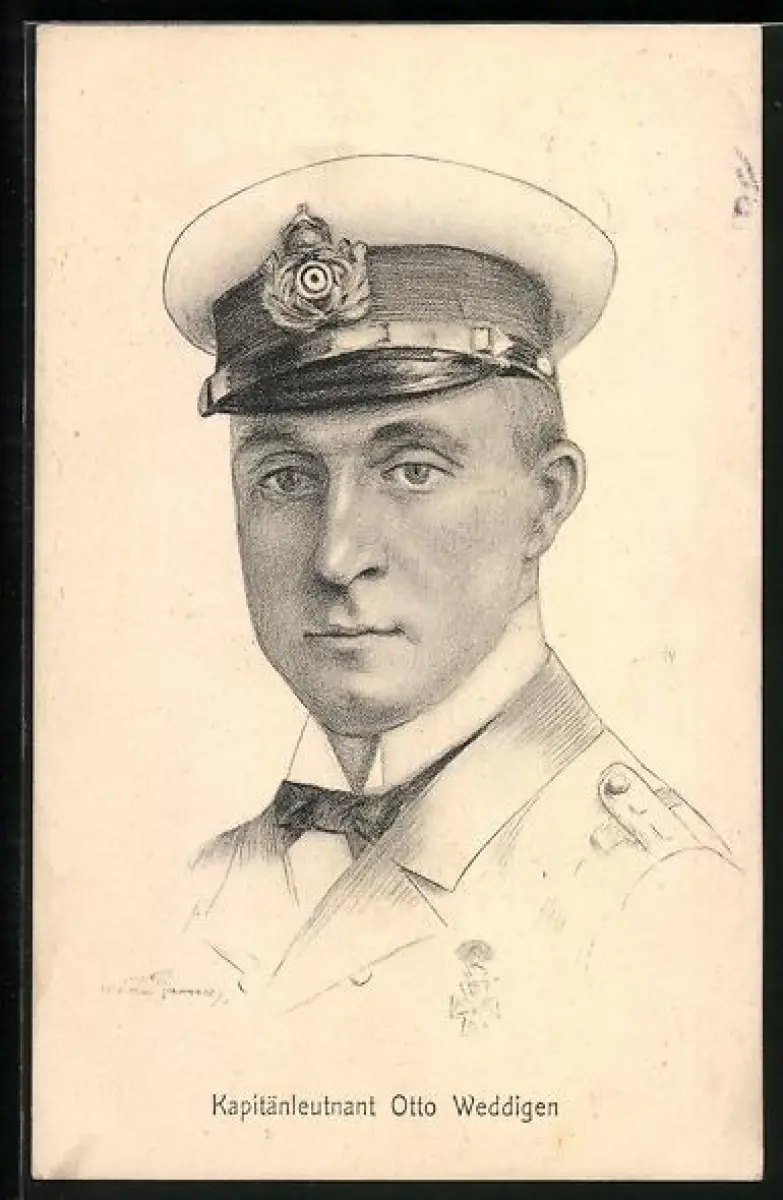 Künstler-AK Portrait des Kapitänleutnanten Otto Weddigen, dem Kommandanten des U-Bootes U9