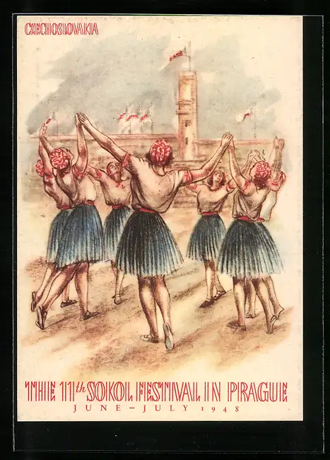 Künstler-AK Prag, Sokol 1948, XI. Vsesokolsky Slet v Praze, Mädchen bei der Eröffnungsfeier