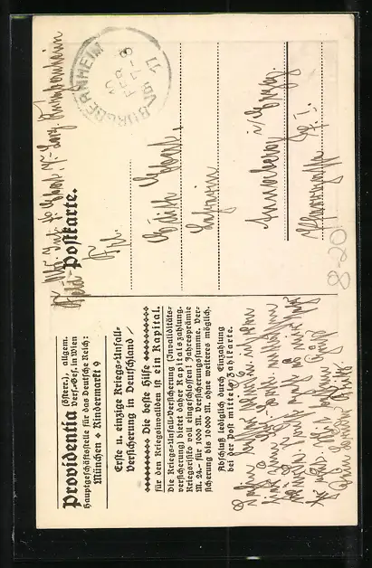 Künstler-AK Providentia Kriegs-Unfall-Versicherung