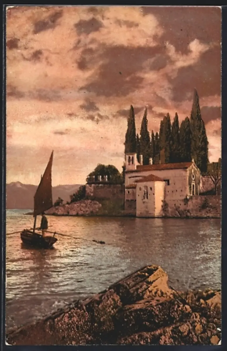 Künstler-AK Punta San Vigilio /Lago di Garda, Segelboot im Abendlicht