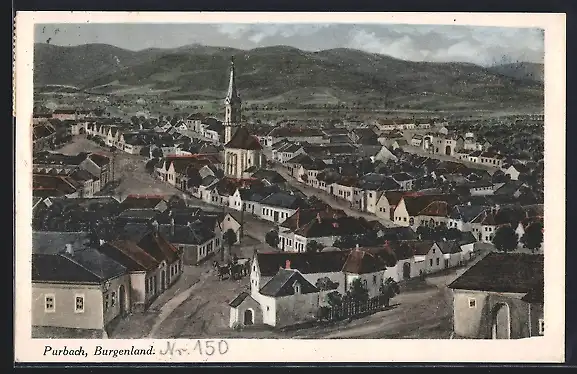 Künstler-AK Purbach, Ortsansicht mit Kirche