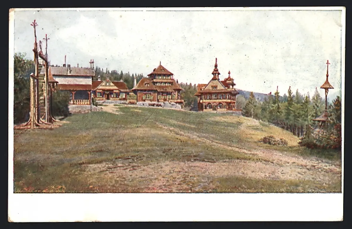 Künstler-AK Pustevnach, Turisticke utulny na Pustevnach