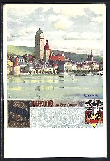 Künstler-AK R. Assmann: Stein an der Donau, Totalansicht