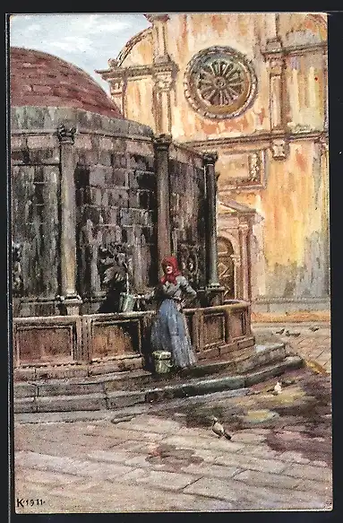 Künstler-AK Ragusa, La fontaine d`Onofrio