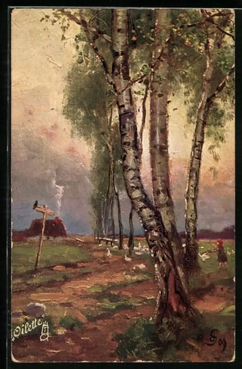 Künstler-AK Raphael Tuck & Sons Nr. 128: Birken am Wegrand