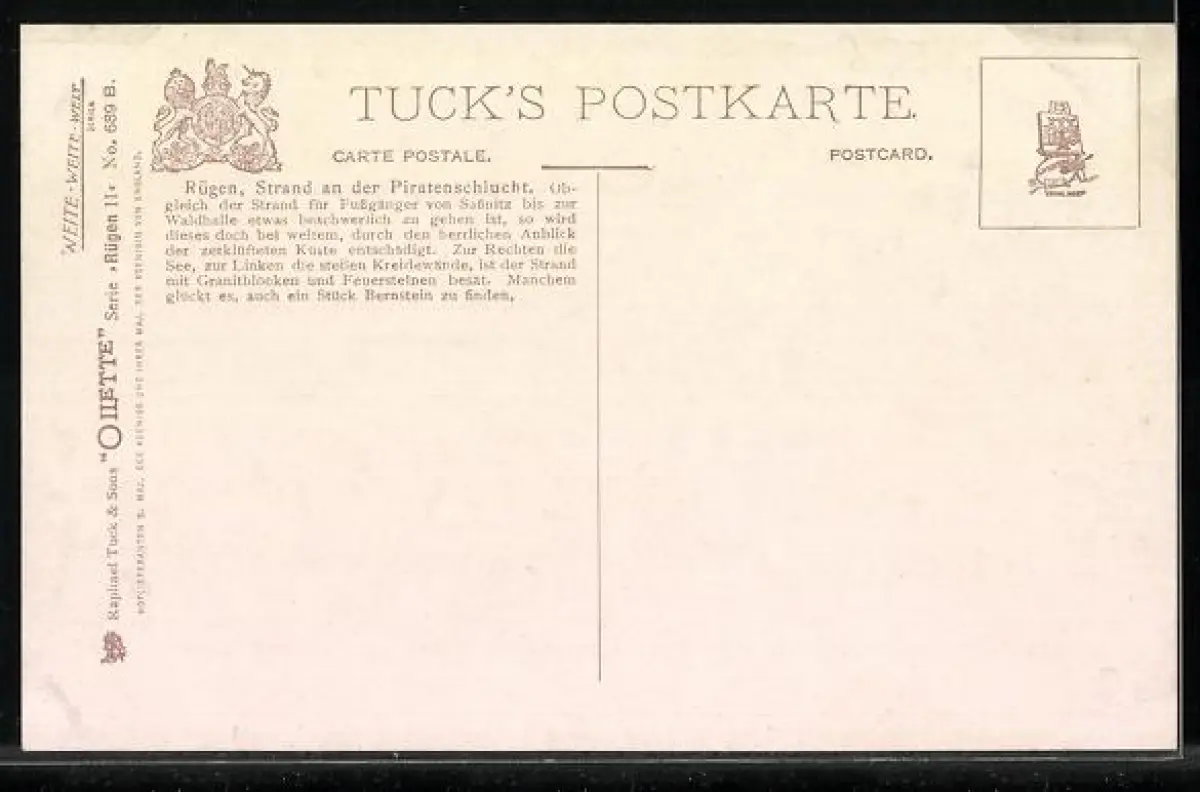 Künstler-AK Raphael Tuck & Sons Nr. 689: Rügen, Strand an der Piratenschlucht
